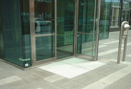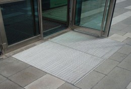 Solna Business Park - Skrapgaller Skrapgaller av rostfritt stål, tillverkade av lamelltyp 7 med halkskydd levererades till ett flertal entréer runt om Solna Business Park. Galleri